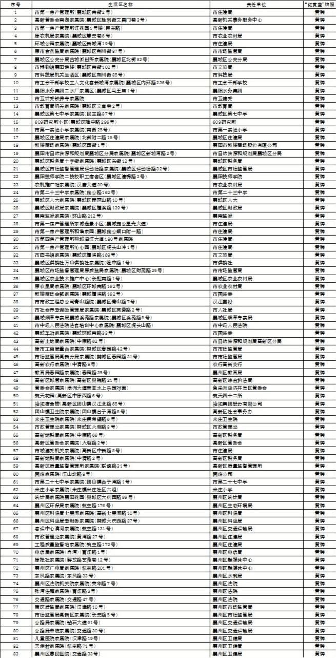 市、区行政机关、企事业单位生活区“红黄蓝”牌照公示(红牌)