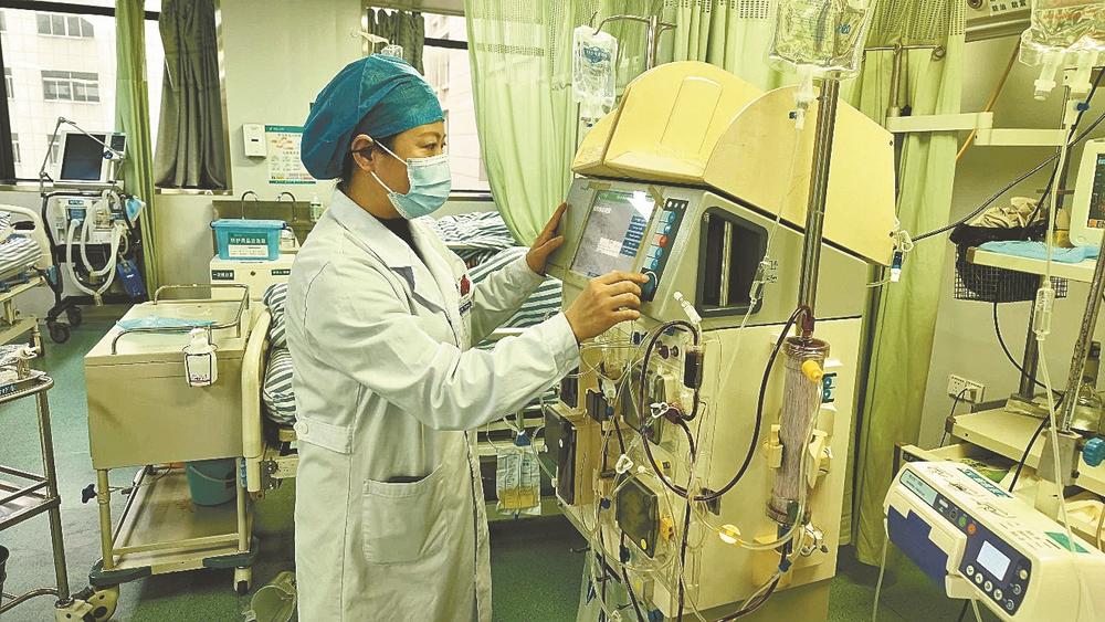 “王主任,5床的杨大爷仍在昏迷中,您看是否需要调整治疗方案?”“7床的王大爷病情有新变化,是否调整用药?”……王继锋走到病人床前,一边仔细研判病人情况,一边在血液净化机器上调整参数。