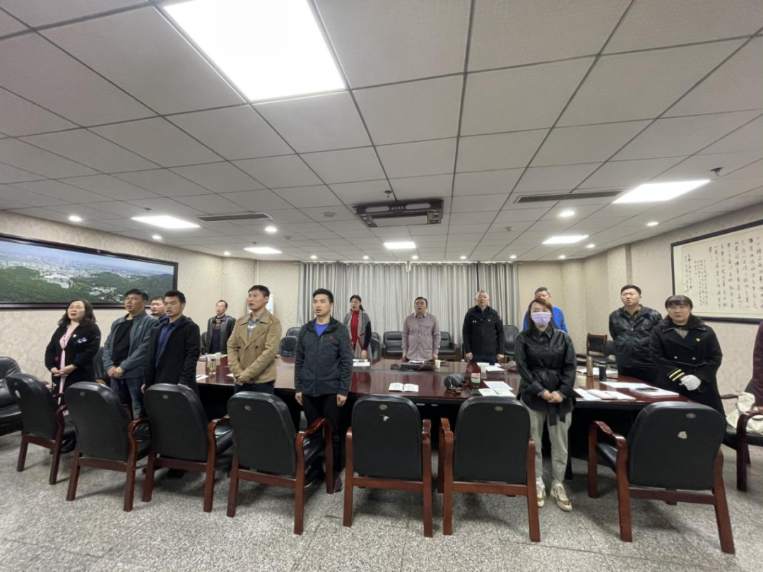 全体党员备好党章和《党员手册》,签到并交纳党费后活动开始。全体党员起立,齐唱国歌,重温入党誓词。
