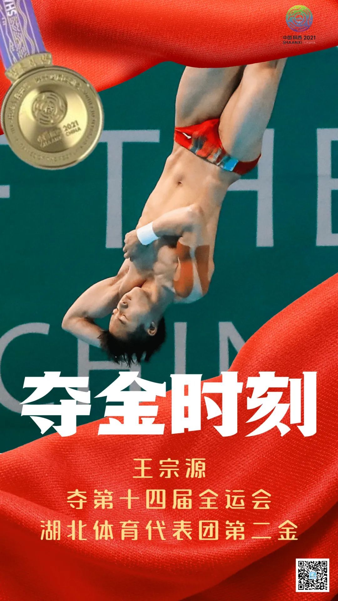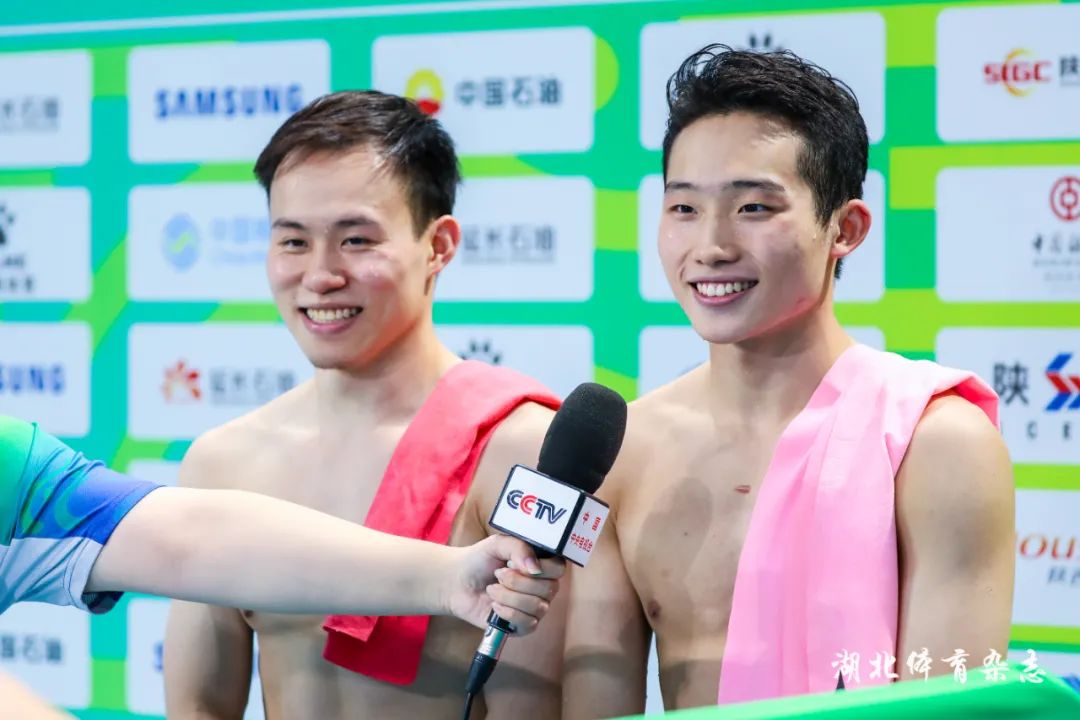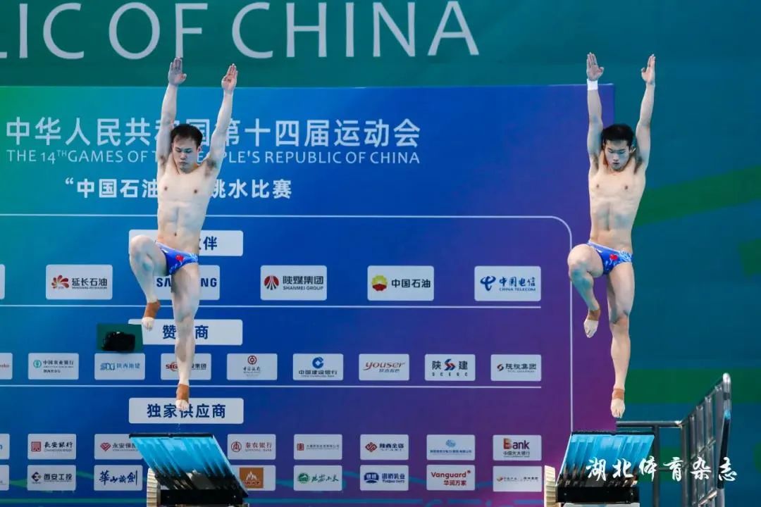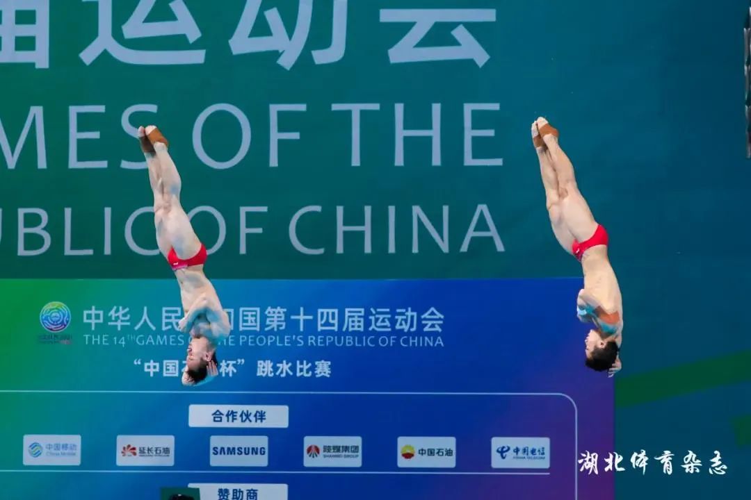 好样的!在第十四届全运会跳水项目男子双人三米板决赛中,王宗源携手谢思埸夺金。