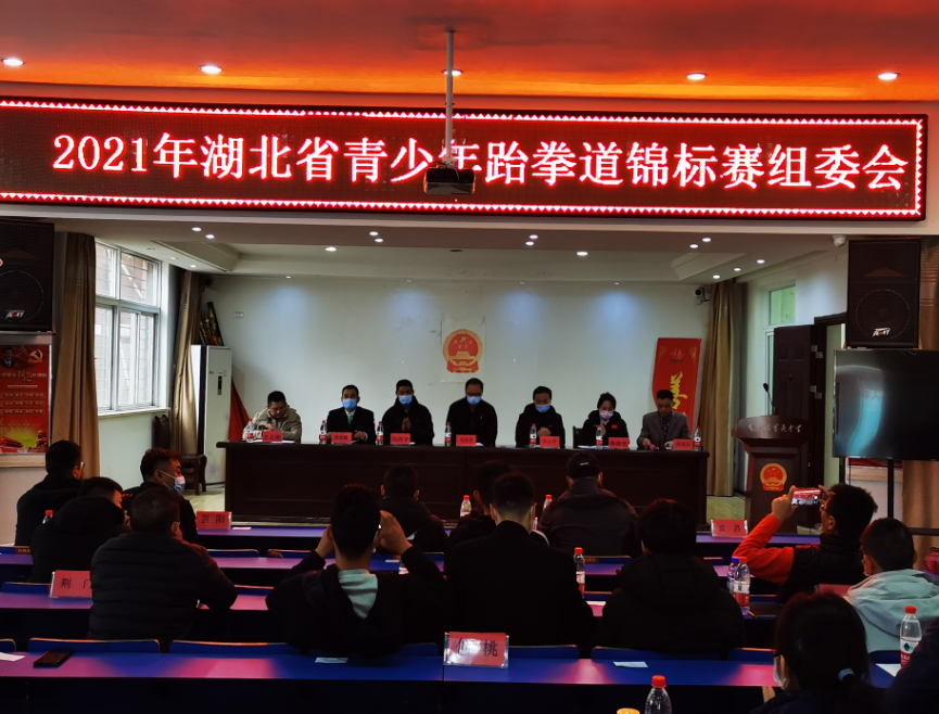 21日,召开大赛组委会。湖北省体育局重竞技运动管理中心主任马剑平发表讲话;襄阳市文化和旅游局四级调研员郑志军致欢迎辞;襄阳市体育运动中心主任王志刚介绍比赛筹备情况。襄阳市文化和旅游局竞训科科长庞国兵,湖北省重竞技运动管理中心跆拳道队领队刘西平,比赛仲裁主任庞俊鹏,比赛裁判长榭晓艳参加组委会。