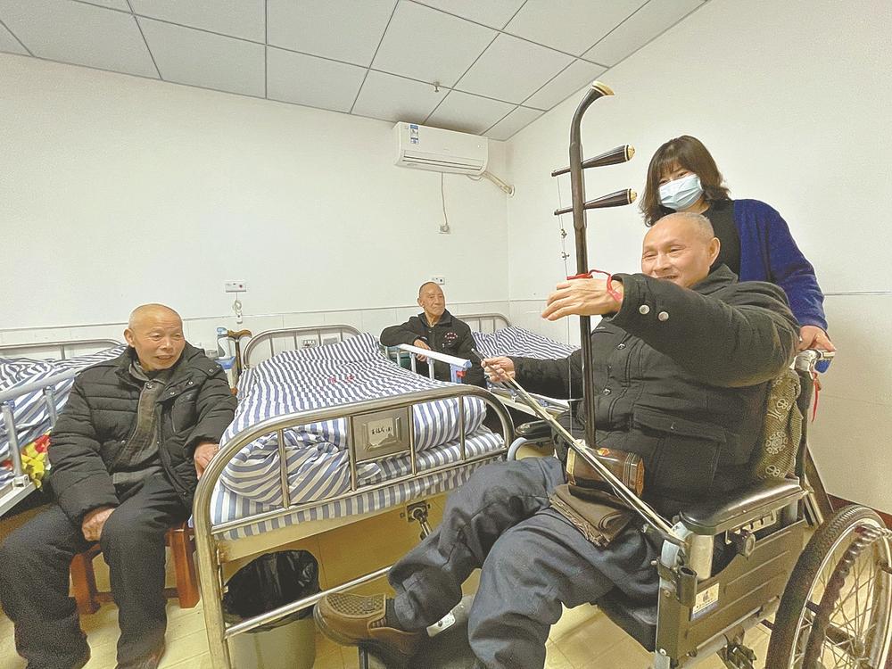 “有好多年都没摸二胡,现在这日子,我过得真舒坦,所以又拉起了二胡。”11月21日早晨,瘫痪老人周宇海坐在轮椅上拉着二胡,脸上洋溢着笑容。搬进谷城颐瑞园养老护理中心后,他养成了每天拉二胡的习惯。