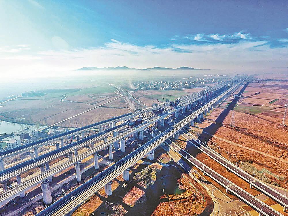 日前,中铁十九局的人员、机械在襄荆高铁襄阳东站引入工程现场进行架梁施工。该工程线路全长17.548公里,工程包括襄常左线、襄常右线、襄常立折线、上行联络线、下行联络线。襄荆高铁是呼南高铁的重要组成部分,襄阳东站引入工程作为其先开段,施工正在火热进行。
