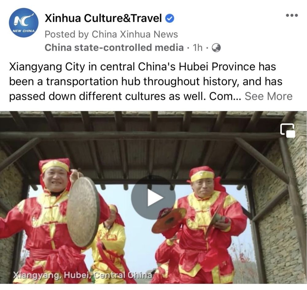 新华社Facebook账号Xinhua Culture&Travel播发襄阳城市家书短视频,该账号拥有2617万粉丝