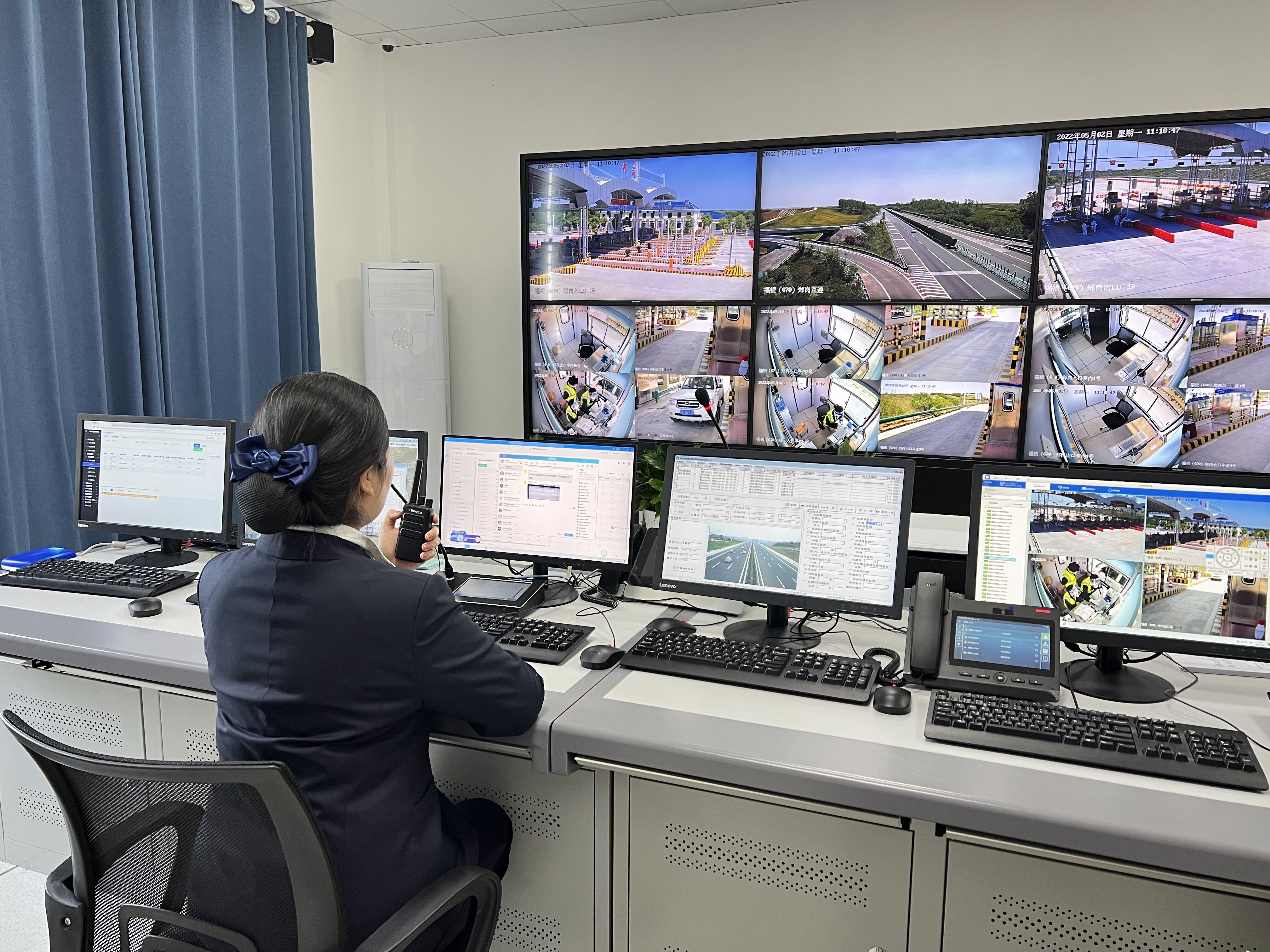 5月1日湖北交投郑岗收费站收费员,穿戴整齐,微笑服务,欢迎您的到来