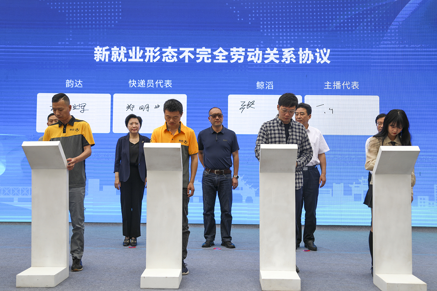 汉江网讯(全媒体记者徐勇 何欣然 牛传宇 吴肖 通讯员吴江波 姜立松)“每月最低工资不能低于3000元,工龄每增加一年月薪增加40元,患病期间工资不低于襄阳最低工资标准80%......有了这些规定,以后我们干活儿心里更踏实了。”18日,在襄阳市快递业集体协商合同暨新就业形态电子劳动合同、不完全劳动关系书面协议集中签署仪式上,“快递小哥”张涛这样说。此次签署活动也意味着我市新就业形态劳动者权益保障今后将“有章可循”。