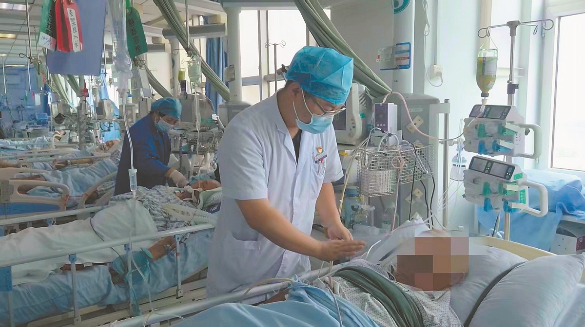 医生正在对热射病人进行治疗 通讯员陈文摄