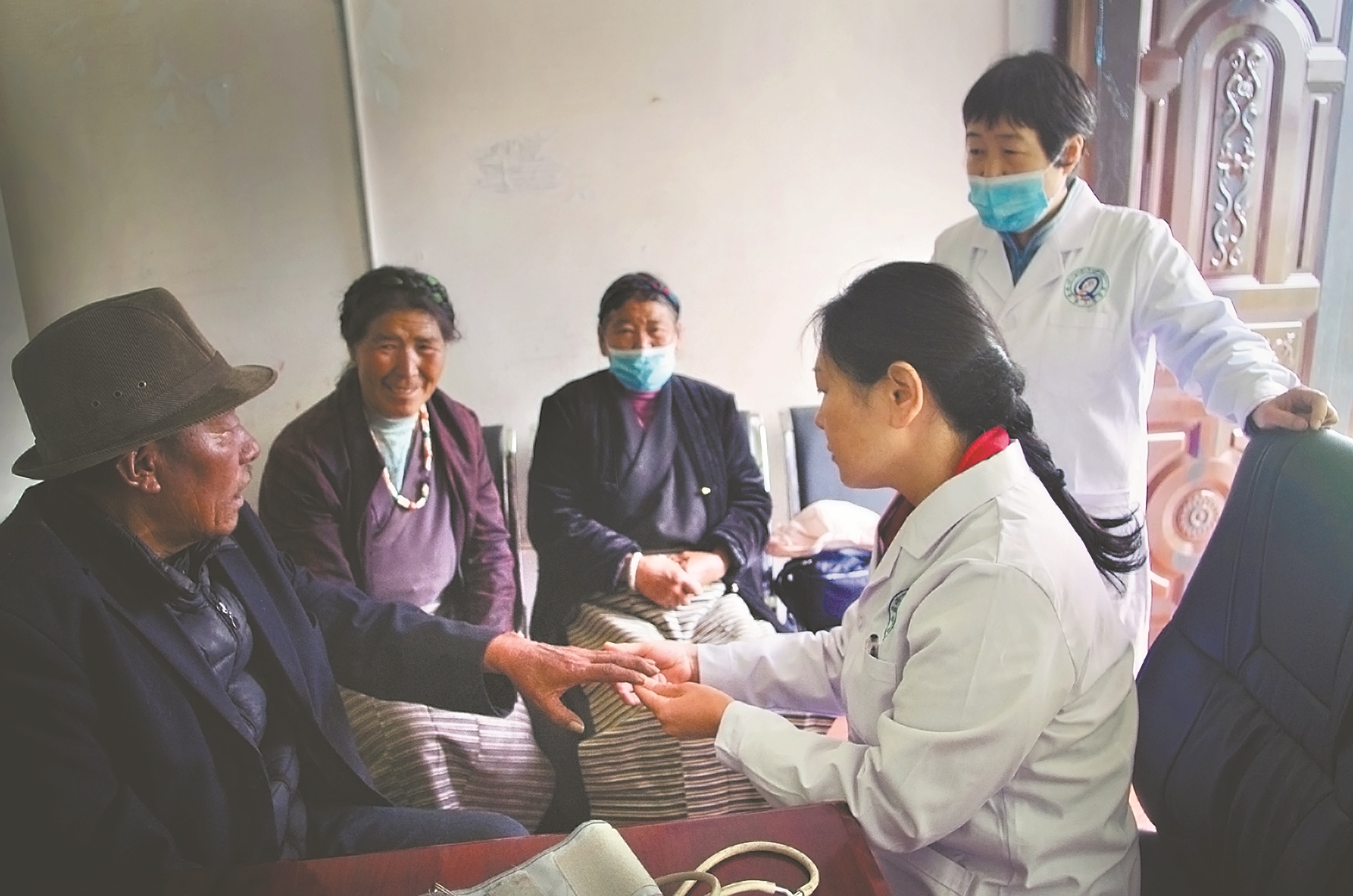 在走访调查中,援藏医疗队的医生每到一处,都为村民现场诊疗,对症施治,指导合理用药,开展健康宣教,把健康送到村民的家门口。