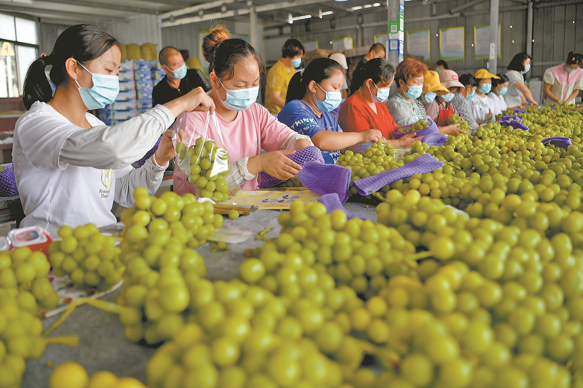 8月26日,在襄城区尹集乡卸甲山村大先生态葡萄种植合作社,大棚内的阳光玫瑰葡萄开始采摘。当天,1吨多包装精美的葡萄发往全国各地和东南亚地区。