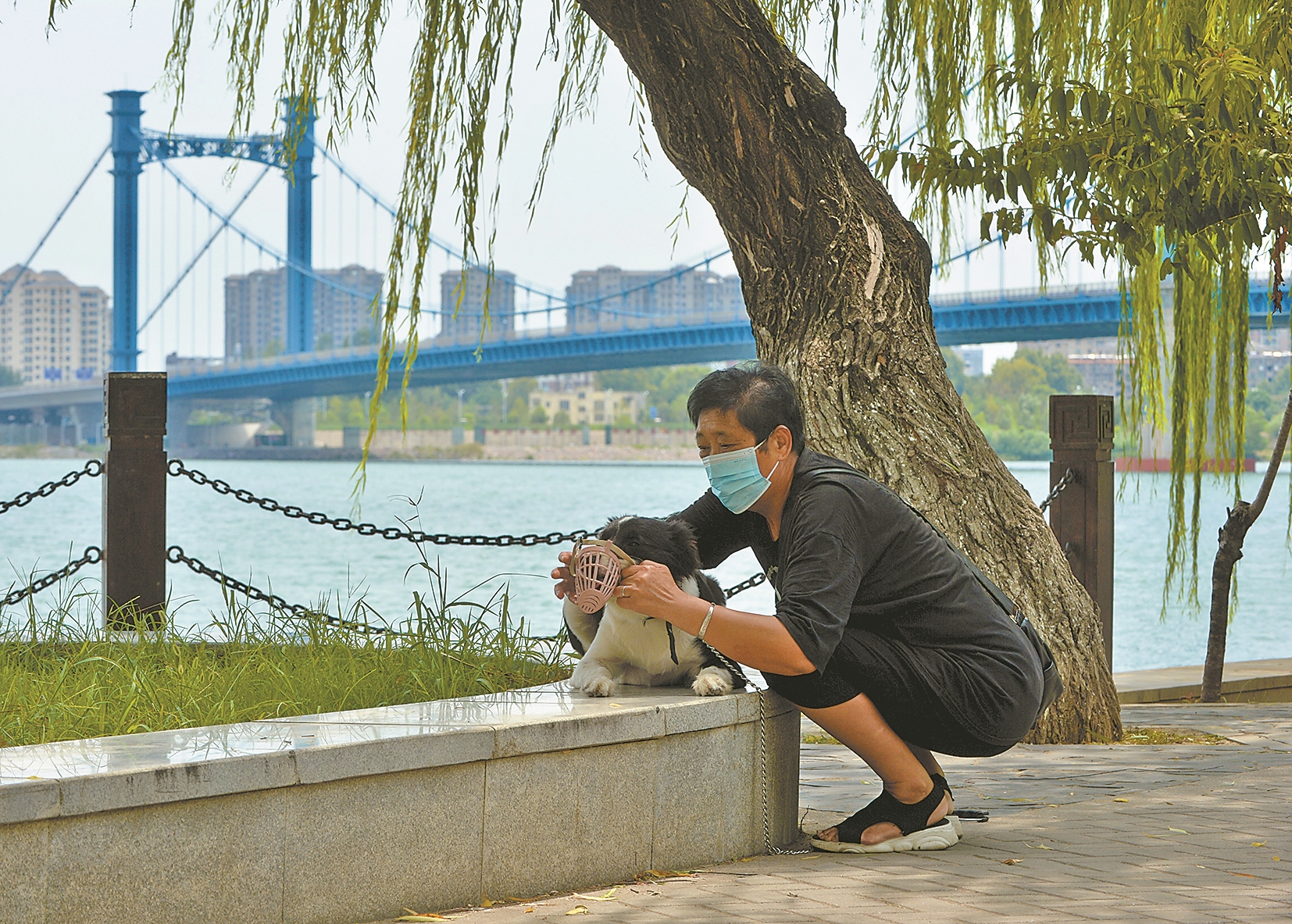 8月24日傍晚,记者走访紫贞公园、沿江大道、滨江大道及附近区域,发现遛狗的市民都用绳子牵住狗,在享受遛狗乐趣的同时,不影响他人。
