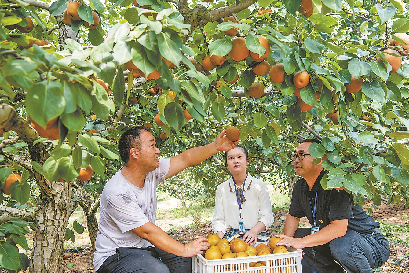 襄阳日报讯 8月26日,宜城市南营街道办事处纪检监察干部在三桥村黄花梨果园向农民了解情况。