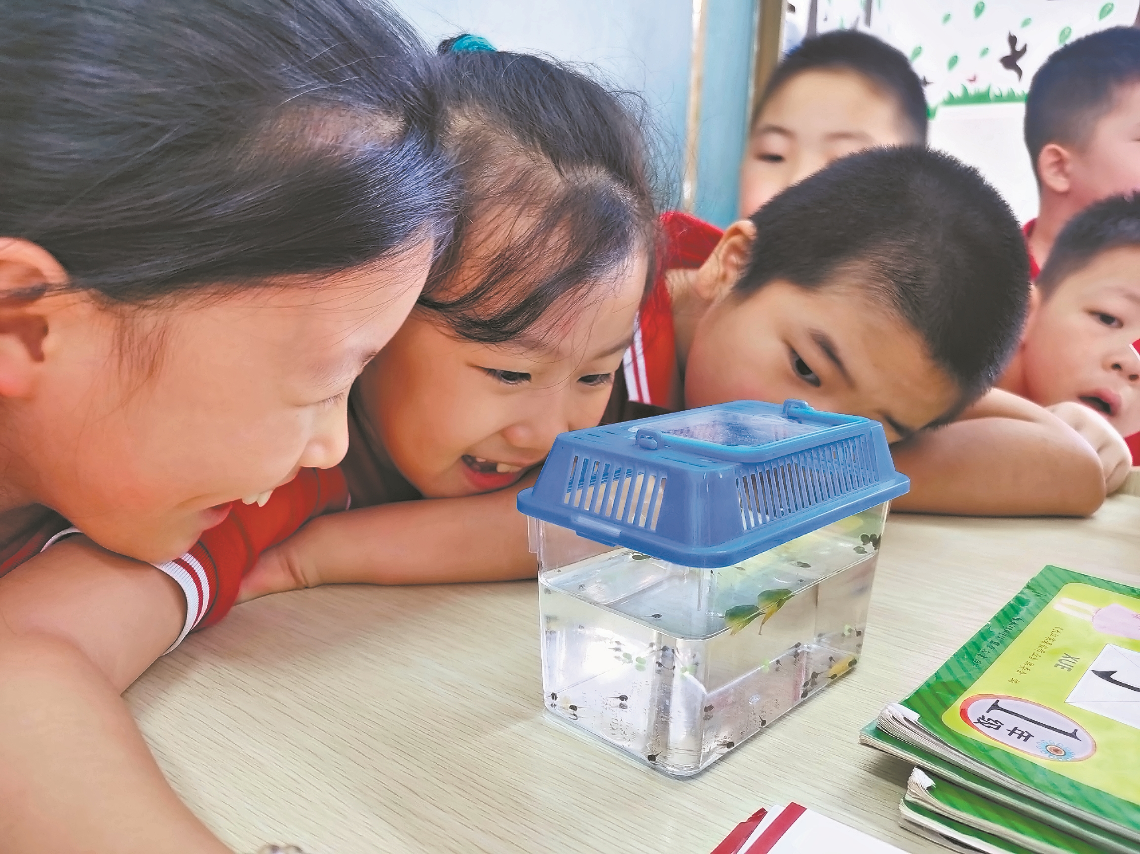 该校相关负责人称,在语文、数学、美术、科学等学科老师的带领下,学生们充分调动各种感官,兴趣盎然地感受自然的奥秘、动物成长过程的神奇变化,学习效果事半功倍。