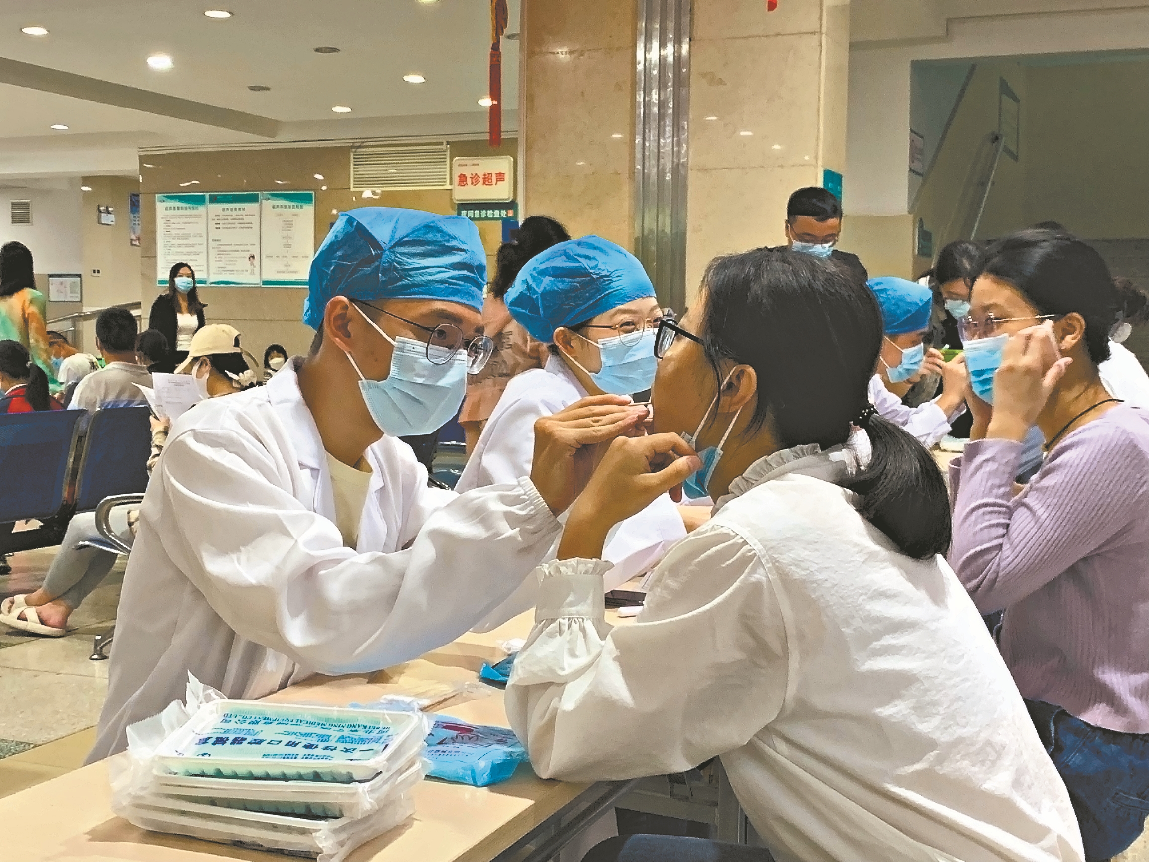 义诊现场,医生向前来咨询的市民介绍了爱牙护牙知识,为市民免费检查口腔,并针对口腔问题给出治疗建议。