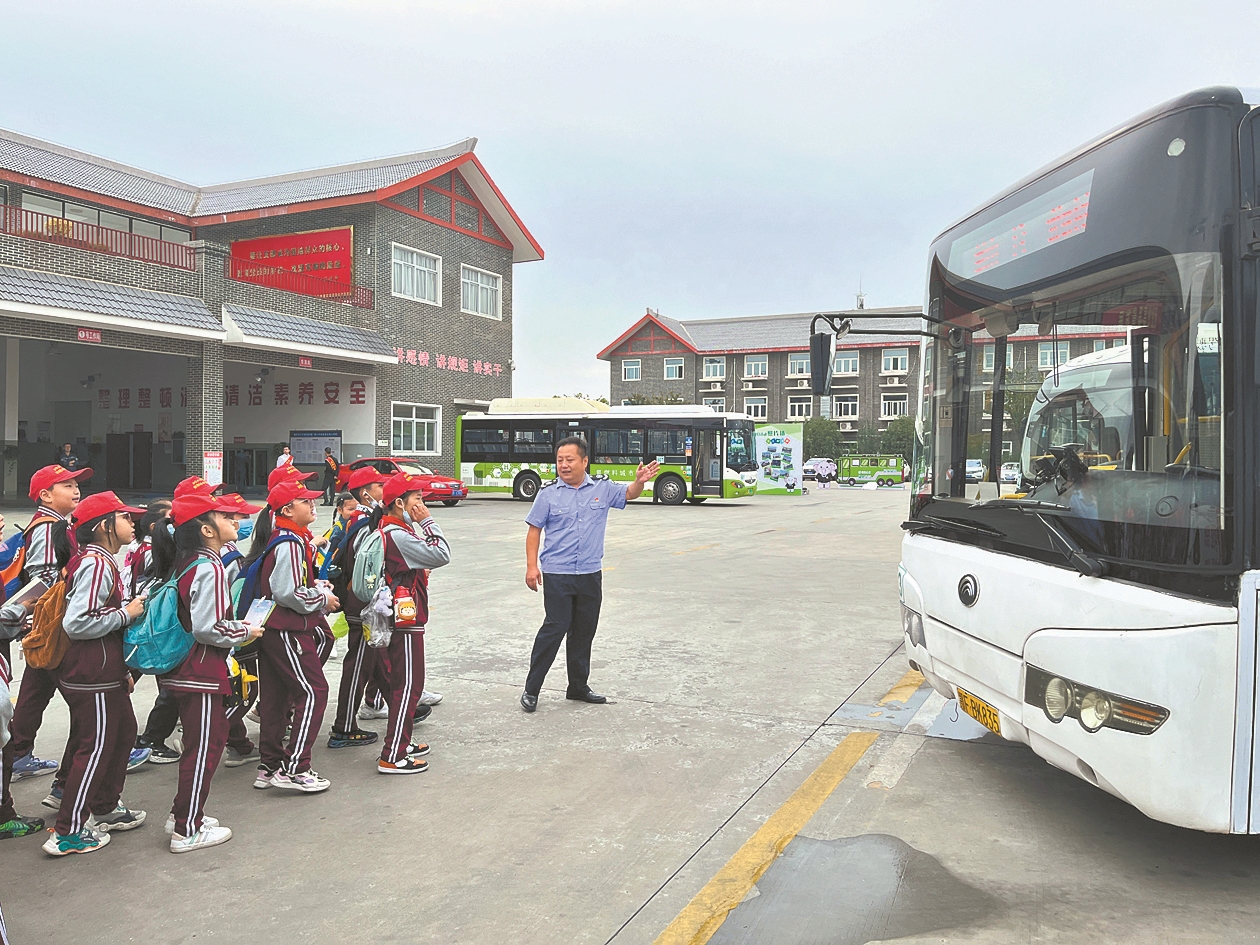 9月25日,大庆路小学的90余名小记者来到市公交集团岘山公交停保场,参加“公交开放日”活动。