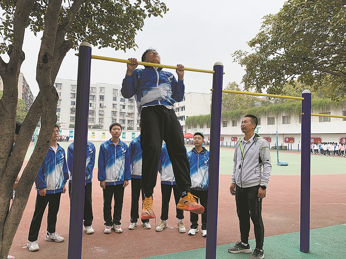 “而且,中考体育测试内容都是在初中体育课程教学大纲规定的范围内,学生通过校内课程训练,不难完成各个项目。”谢明阳说,他所在的学校为了让学生能够达标,从七年级开始就有体育老师指导学生训练引体向上项目,不仅教授了科学的训练要领,还购买了适合不同身高和年龄段学生使用的器材。从七年级开始,平时上好课、勤锻炼的学生,基本都能取得不错的成绩。
