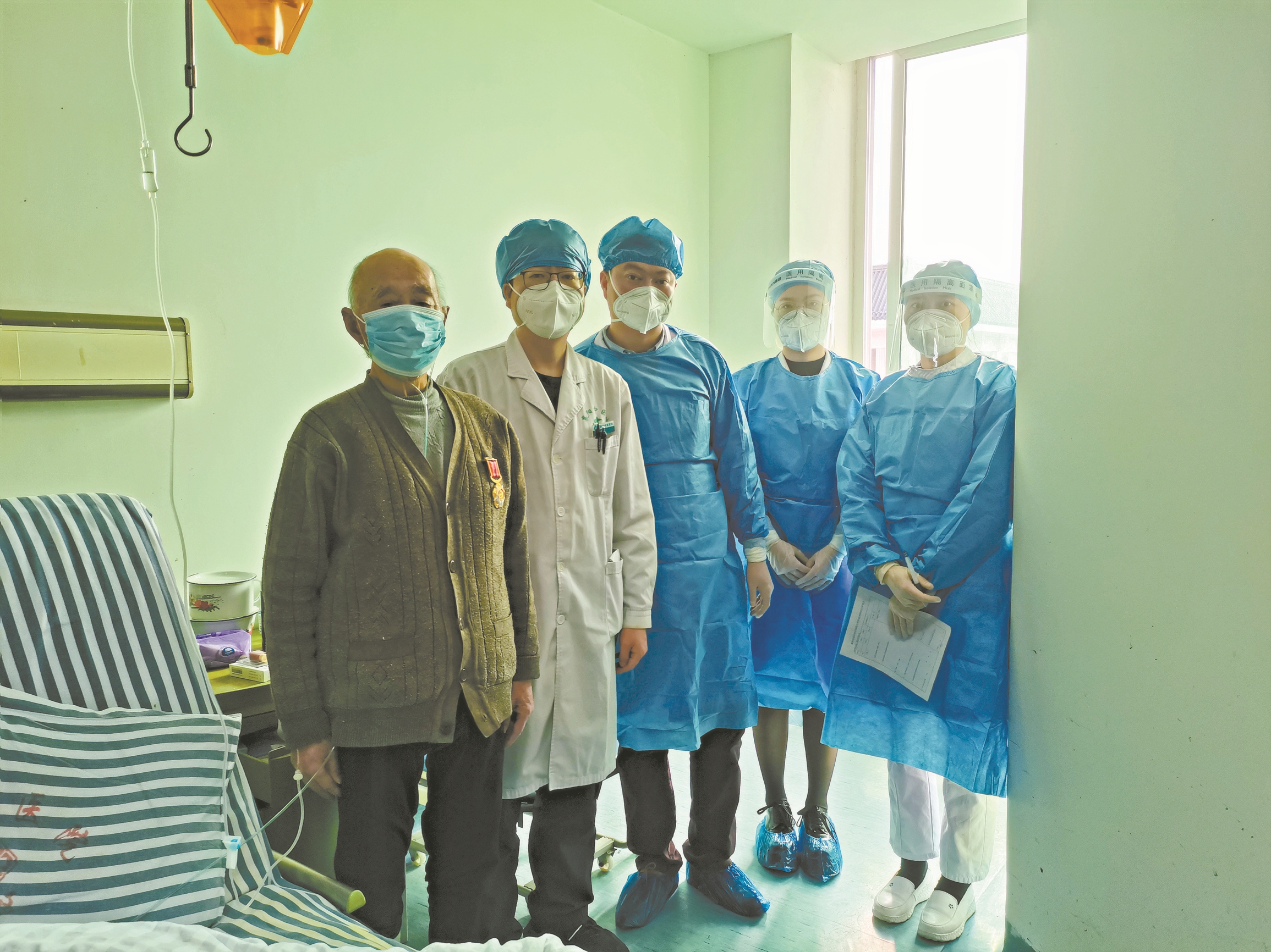 梅大爷是一名参加过抗美援朝的老兵,从视频中看,老人精神矍铄,声音洪亮。然而一周前,老人刚刚经历了一场“生死劫”。据悉,梅大爷患慢阻肺、脑梗、高血压病和冠心病多年,属于典型的高风险人群。2022年12月底,梅大爷感染新冠病毒发热5天后,被家人送到襄阳市中医医院就诊。