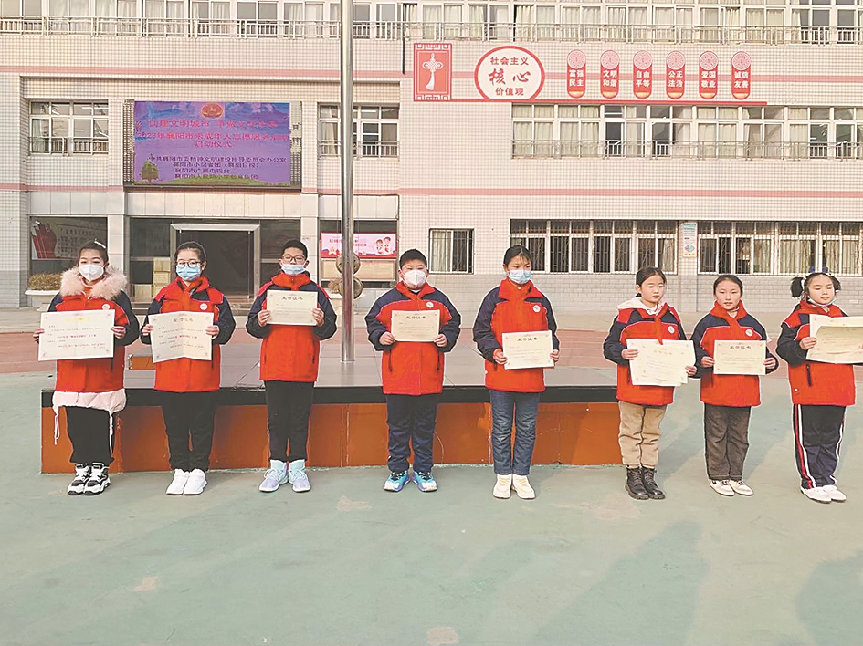 襄阳市人民路小学教育集团全体师生进行了创文宣誓和签名活动;根据2022年襄阳市优秀童谣改编的《小小志愿者》MV正式发布。在2022年襄阳市“我是城市文明小主人”系列活动中被评为“文明小天使”和“小小讲解员”的学生受到了表彰。受表彰学生代表海瑜航、朱峻熙分享了参加志愿活动的经历和收获。