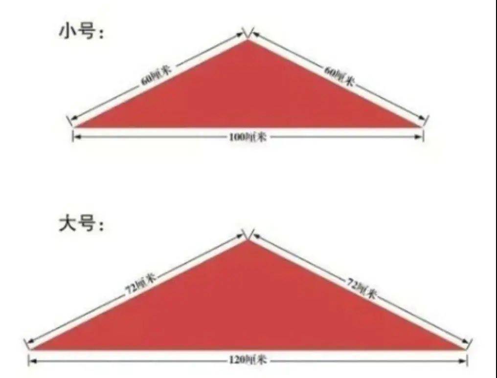 大号:底边长120厘米、腰边长72厘米