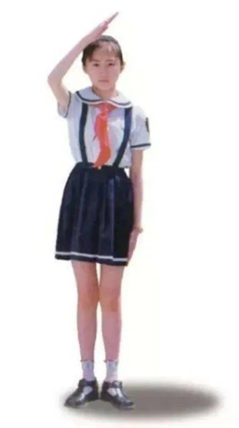动作:立正,右手五指并拢,手掌与小臂成直线,自下至上经胸前高举头上约5厘米(约一拳),动作自然流畅,掌心朝向左前下方。