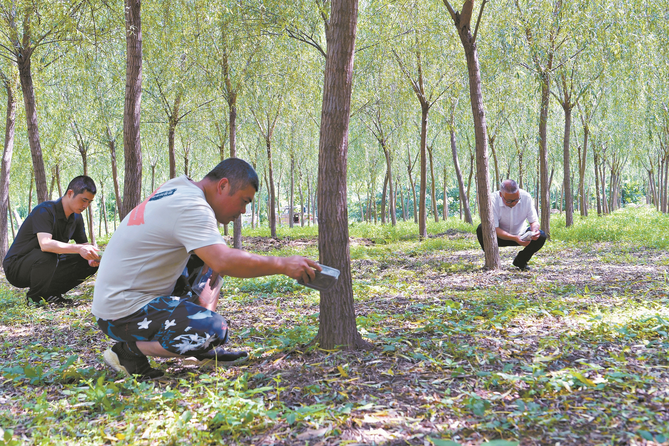 6月13日,在襄城区隆中街道办事处贾洲村,村民们正在林下点种蝉苗。据了解,该村村民人工养殖金蝉已取得成功,每亩可收获金蝉80斤左右,市场价格为每斤80元至90元,能有效带动村民增收致富。