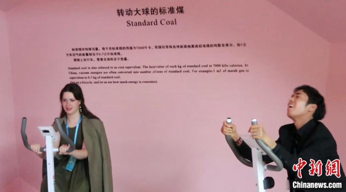 在华留学生体验“低碳城市”展厅互动产品。 唐炜妮 摄