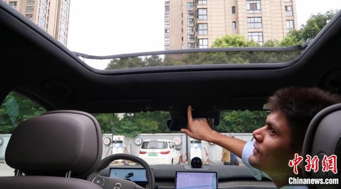 在华留学生上车体验新能源汽车站内“一键换电”。 唐炜妮 摄