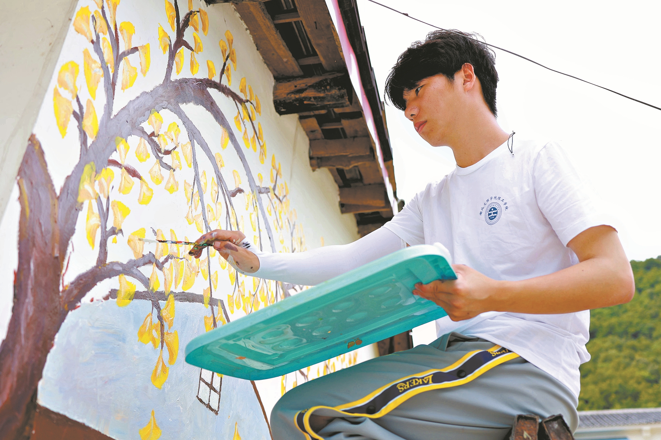 “学以提能、学以致用是此次社会实践的核心。”带队辅导员吴文婷表示,社会实践团队进村之后,在广泛听取群众意见的基础上,确定了墙画的主题。