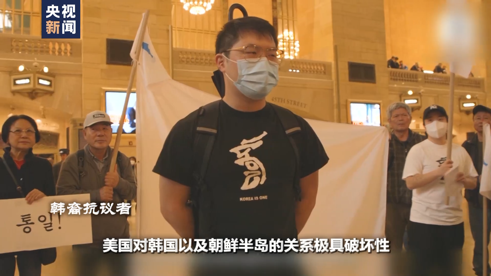 韩裔抗议者:美国对韩国以及朝鲜半岛的关系极具破坏性,对所有韩裔人口造成了伤害。这只会加剧朝鲜人、韩国人和海外朝鲜人之间的分裂。美国在分裂我们的人民方面扮演了重要角色。