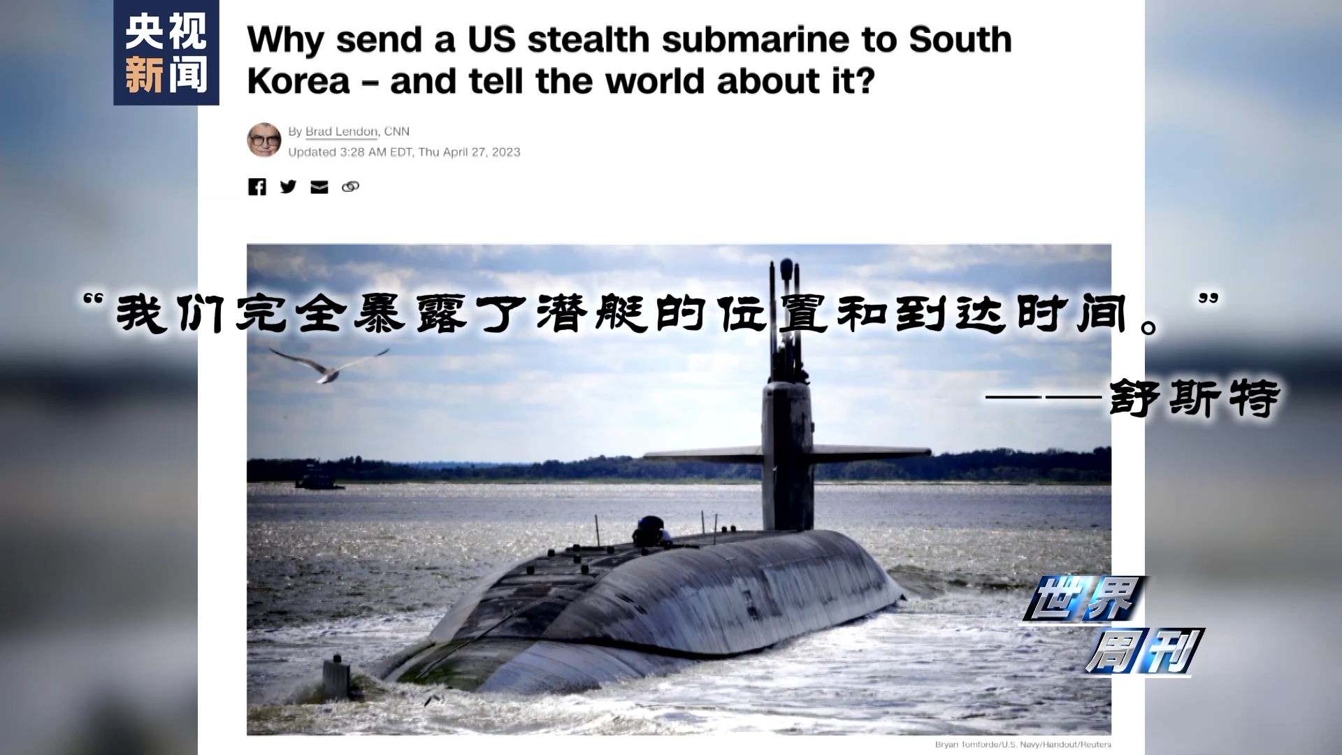 4月27日,舒斯特对CNN表示,从战术上看,“俄亥俄”级战略核潜艇最大的优势在于能在海底“隐形”。但“晒潜艇”的做法降低了核潜艇的真正价值。