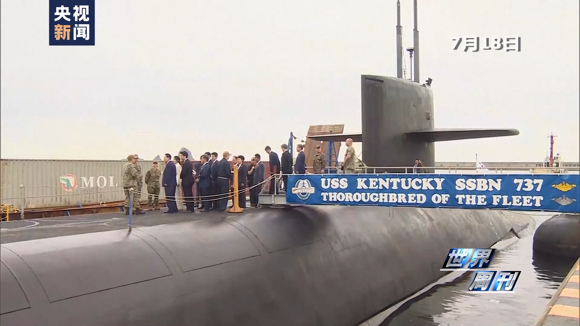 7月18日,美国海军“俄亥俄”级战略核潜艇“肯塔基”号(USS Kentucky)出现在韩国釜山港。