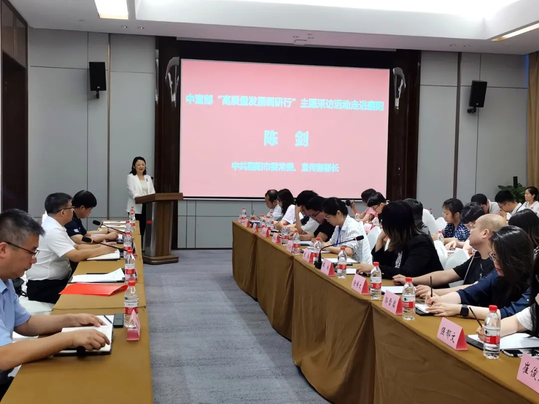 7月31日,中宣部“高质量发展调研行”湖北主题采访团襄阳见面会举行。市委常委、宣传部部长陈剑参加活动并致辞。