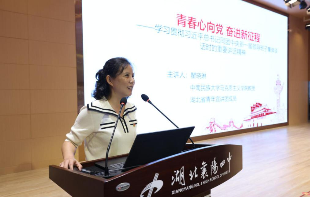 瞿晓琳教授围绕“习近平总书记对青年一代的高度重视和殷切关怀、习近平总书记关于青年工作的重要思想和实践要求、党的十八大以来青少年和共青团事业的发展成就和根本原因、新时代中国青年运动的时代主题和历史使命、新时代青年成长的难得际遇和光明前景、共青团改革发展的时代要求”六个方面,为大家进行了深入浅出的讲解,激励广大青少年切实肩负起新时代新征程党赋予的使命任务,为推进强国建设、民族复兴伟业接续奋斗。