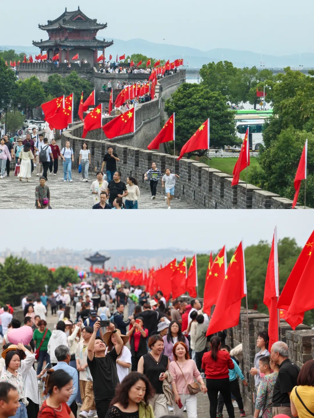 一年当中大街小巷两次会被红色点亮:一次是春节的红灯笼🏮一次是国庆节的国旗🇨🇳今天10月1日国庆节襄阳街头、城墙上飘满“中国红”每条街都是一道亮丽的风景满街红旗是中国人的浪漫这一抹鲜艳的中国红在每一个中国人心中都有太多感动……在社交平台上网友们齐刷刷表白祖国!千言万语汇成一句:我爱你,中国❤️❤️❤️惟愿山河锦绣,国泰民安生日快乐!