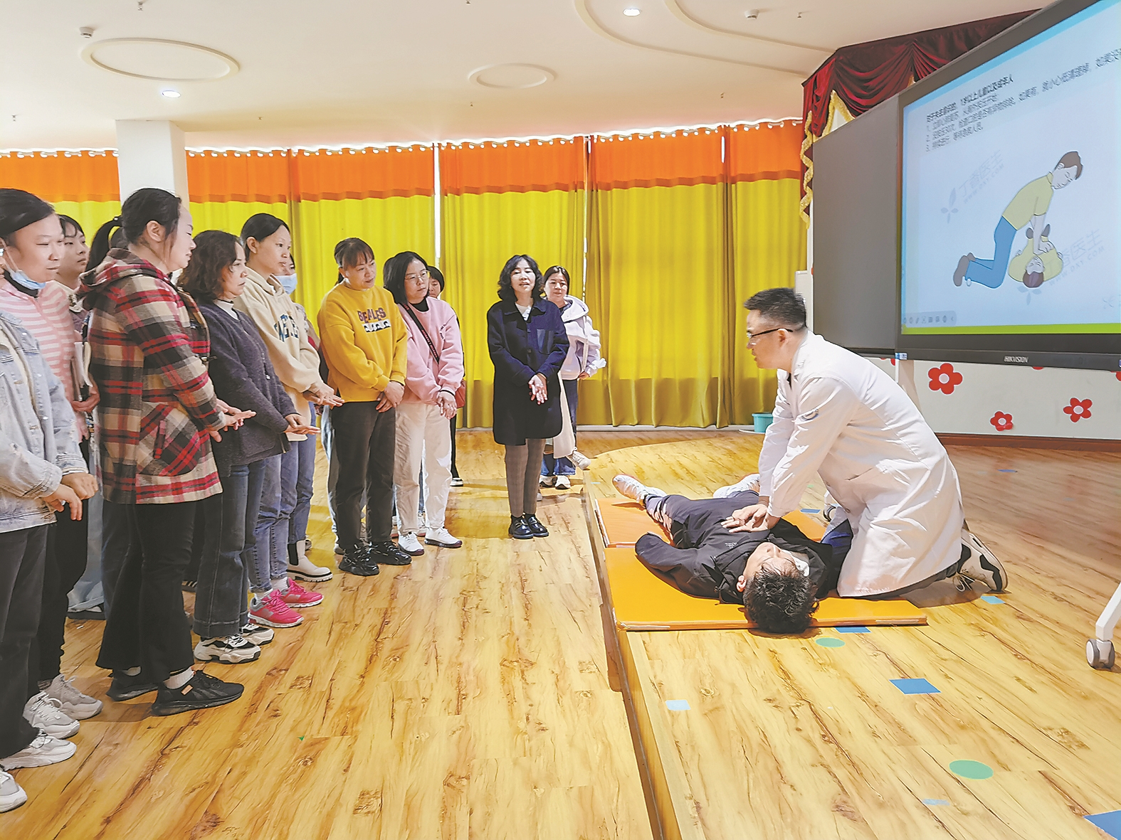 为了普及应急急救知识,提升教师的安全防范意识和应对突发事件的能力,11月8日,襄阳市直属机关第二幼儿园特别邀请襄阳市妇幼保健院儿保科程继文医生对全体教职工进行幼儿意外伤害急救知识培训。