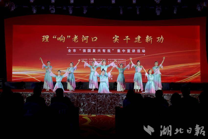 在文化文艺宣讲中,老河口市委党校的三名年轻教师带来的《穿越时空的对话——弘扬丹渠精神 传承红色基因》,通过情景演绎的方式,深情讲述了丹渠精神的深刻内涵和当代价值;市税务局三名年轻干部通过讲述孟楼税务分局分局长宋会岭始终将纪律规矩内化于心、外化于行,守好作风纪律底线的故事,教育和引导全市广大党员干部树立为民务实清廉形象;市实验小学带来歌舞《城北一片读书声》,以经典文化熏陶引领,涵养气质,启智润心。