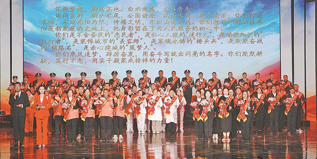 田间乡野、街头巷尾、三尺讲台、病榻床前、危急关头……你们传递幸福,不以枣阳为限;传播文明,不以山海为远。你们把汗水挥洒在枣阳蓬勃发展的大地上,把身影留在了为人民服务的初心中。