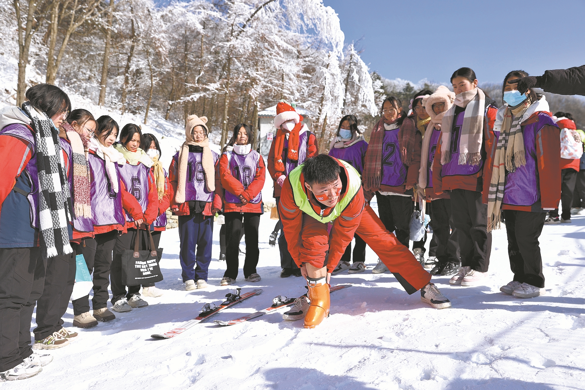 12月20日,200多名保康寺坪中学的学生欢聚横冲国际滑雪场,开展冰雪运动特色研学活动。