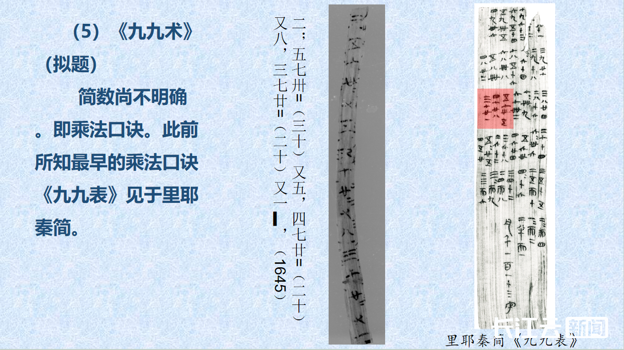 荆州博物馆副馆长杨开勇介绍,通过对出土竹简的整理研究,一是发现了最完整的校刊本《尚书吕刑》,是记述西周时期穆王改革的一篇著名的文献,填补了历史记录空白;二是发现了最完善的古史记载的细节,比如说《四王五霸》里面提出来把楚文王列于五霸之一;三是发现了最早的乘法口诀实物,叫“九九术”,把中国最早的乘法口诀的实物往前提了一个多世纪,达到了战国中期。