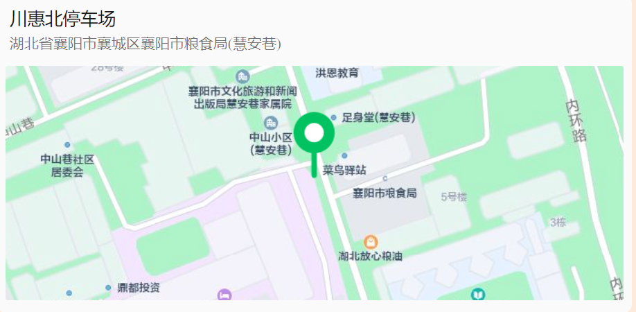 07停车场:川惠北停车场川惠北停车场湖北省襄阳市襄城区襄阳市粮食局(慧安巷)