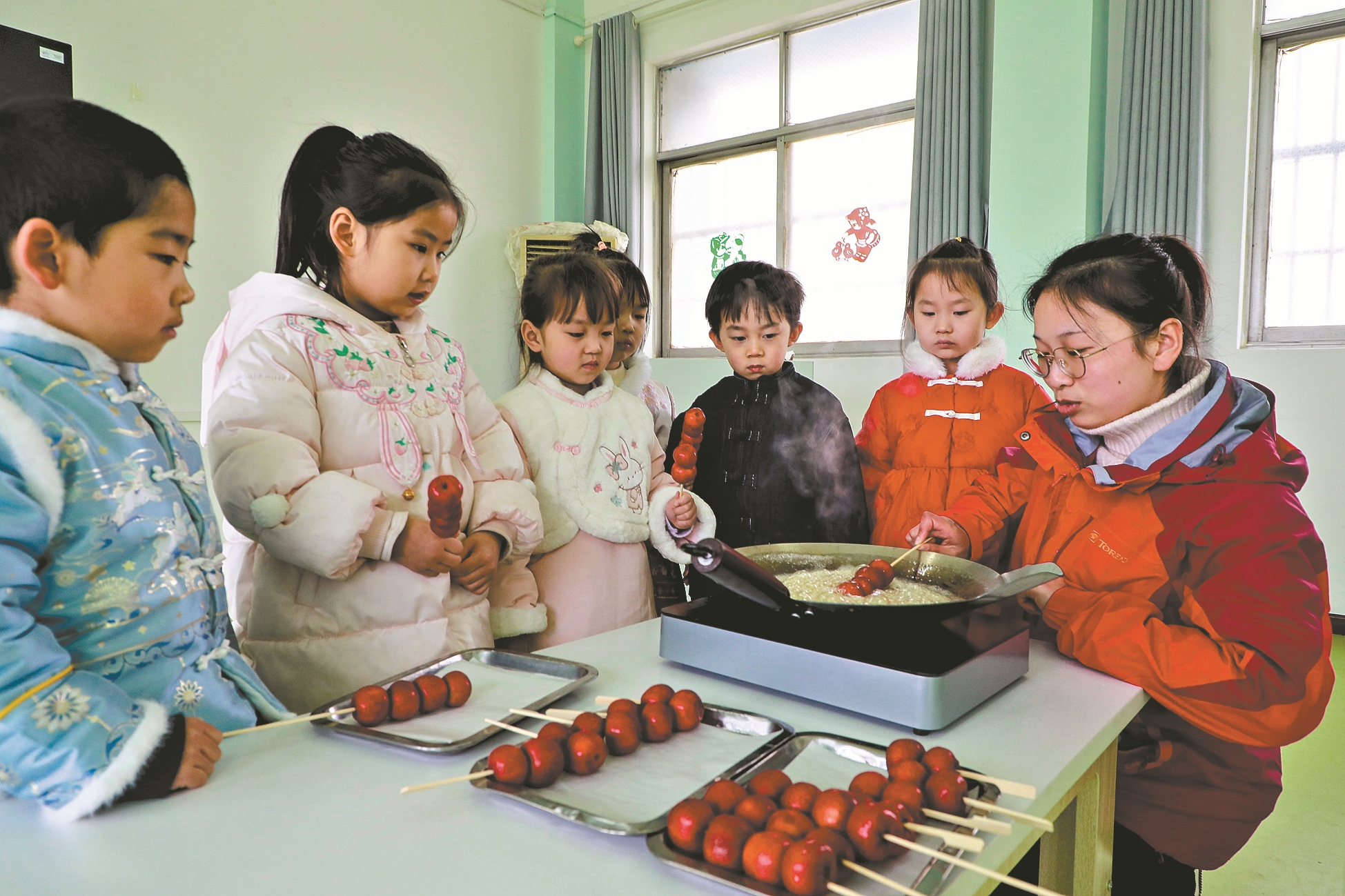 1月4日,襄阳市商务第一幼儿园的孩子们跟着老师一起做冰糖葫芦,了解小寒节气的由来,感受中华优秀传统文化魅力。