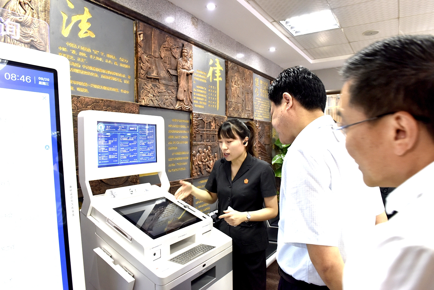 枣阳法院服务大厅内的一体查询自助终端,让群众点指间了解案件办理进程。 梁军 摄