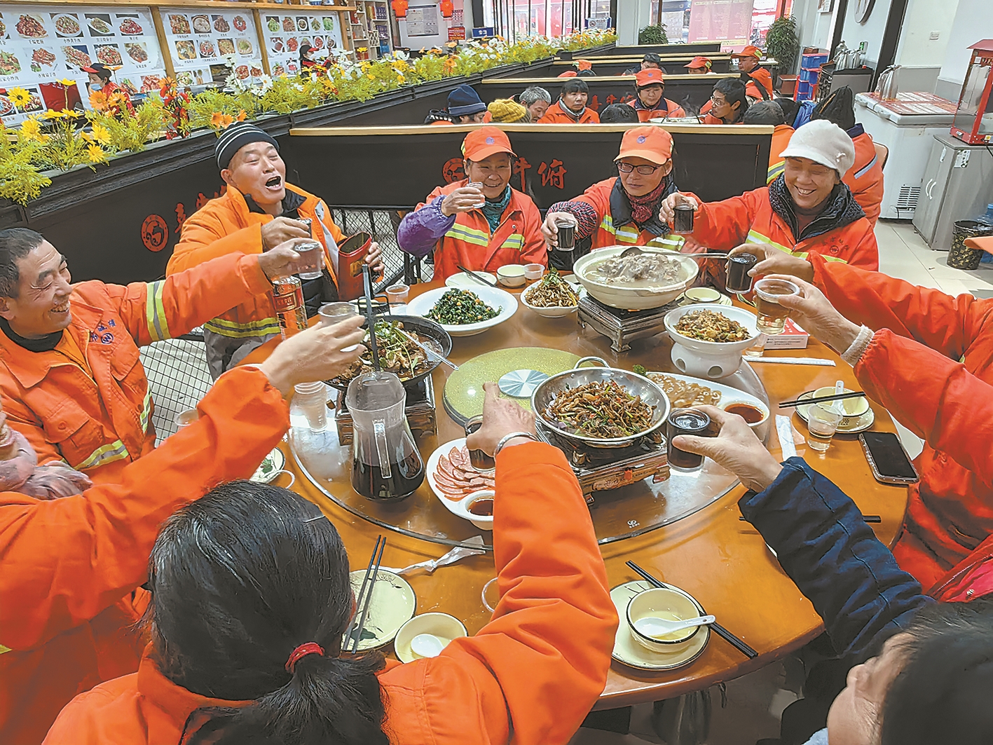襄阳日报讯(通讯员杨悦伟 全媒体首席记者李兴会)“这一大桌子菜,都是我们喜欢吃的,感谢范老板请我们吃大餐。”1月18日中午,负责樊城长征路保洁的环卫工人徐应珍高兴地说。
