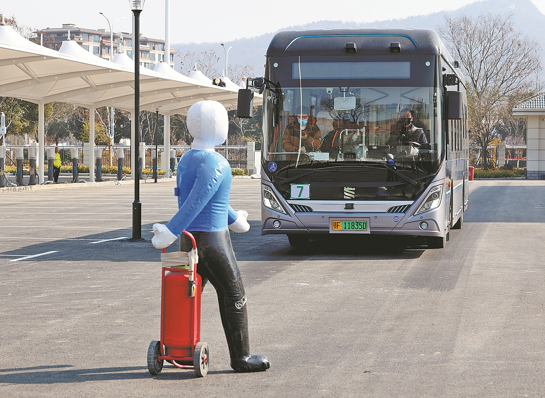 1月26日,市公交集团一辆装上“防撞系统”的公交车在封闭场地测试,公交车提前判断障碍物,遇到危险自动刹停。