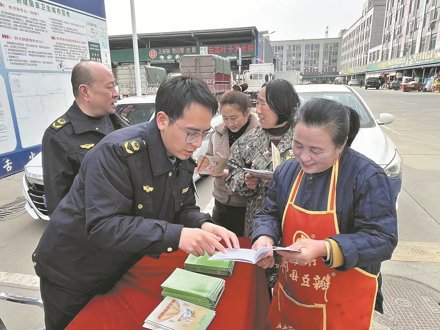 3月12日,在竹叶山农产品交易中心,樊城区市场监管局牛首市场监管所联合市场开办方开展活动,向市场内商户和消费者发放消费维权手册,现场受理消费投诉,讲解消费维权知识。