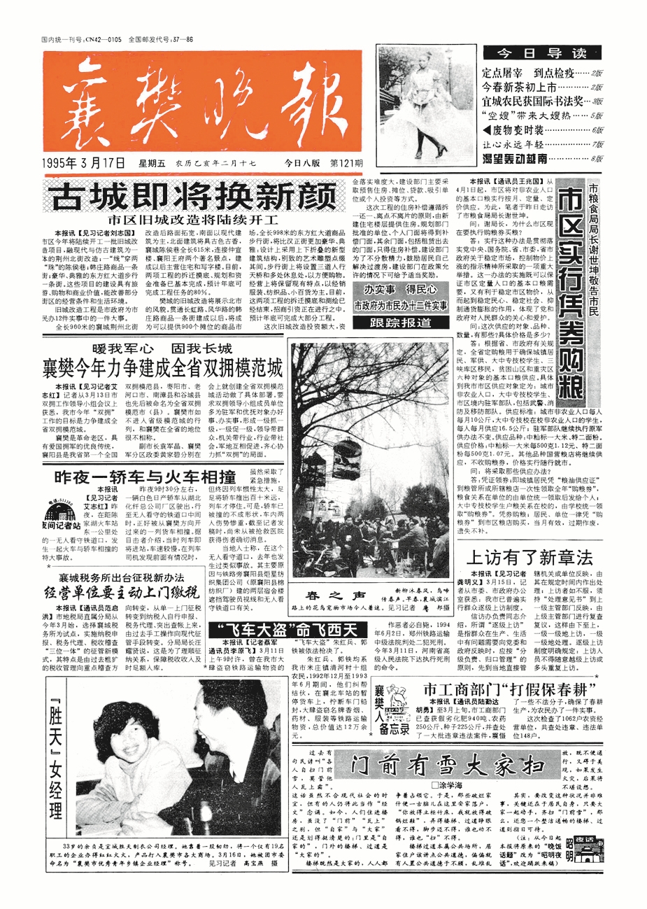 1995年,市区将陆续开工一批旧城改造项目,其中包括融现代与仿古建筑为一体的荆州北街改造。全长900米的襄城荆州北街改造后路面拓宽,南面以现代建筑为主,北面建筑将具古色古香。