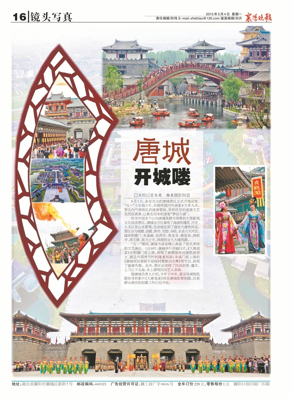 2015年5月1日,备受关注的唐城景区正式开城迎客,“五一”小长假3天,共接待国内外游客8万多人次。景区内气势恢宏的盛唐景致、异彩纷呈的盛唐文艺及民俗表演,让慕名而来的游客“梦回大唐”。