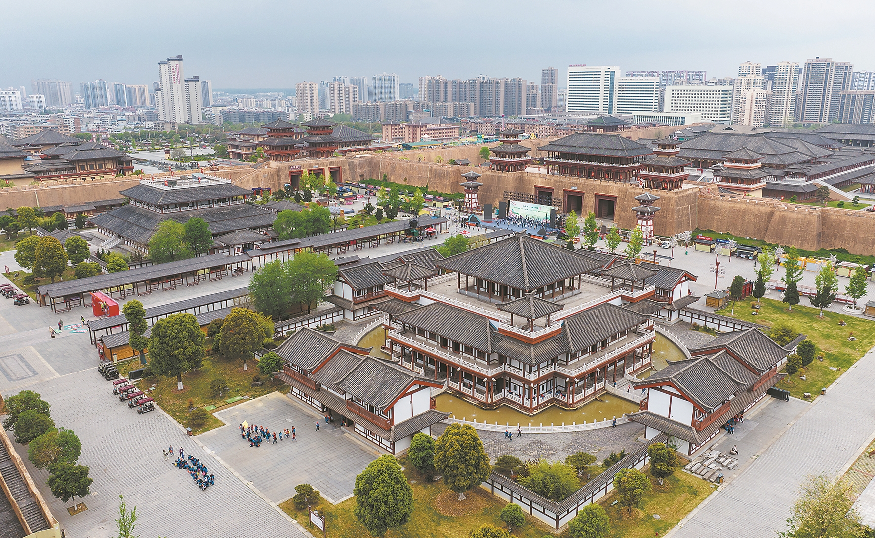 4月10日,学生们在枣阳汉城景区开展研学活动。汉城景区设置了汉服体验、古法造纸、活字印刷、手工织布等中国传统文化研学课程,让孩子们感受汉文化的魅力。 全媒体首席记者杨东 通讯员李晓军 摄