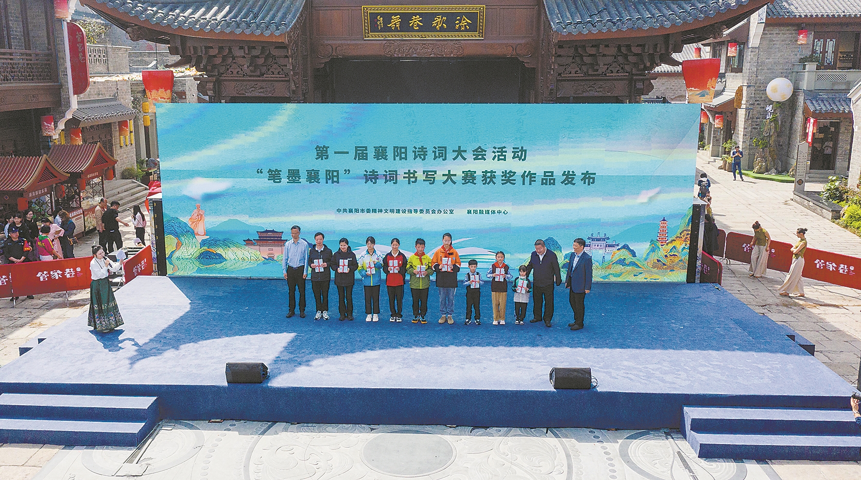 现场通过歌舞表演、诗词吟诵、情景剧、读书分享等多种形式演绎经典诗词文化,展示了“书香溢襄阳”建设的丰富成果。省新华书店(集团)有限公司襄阳市分公司、市图书馆还在现场开展图书惠民及签售活动。活动还邀请游客开展国风读书会,共赴读书游园盛会,参与飞花令、猜诗谜、活字拓印、投壶等传统文化活动,让读书好、好读书、读好书蔚然成风。