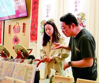 游客在襄阳古城管家巷体验老河口木版年画文创产品制作。本报记者郭冠东摄