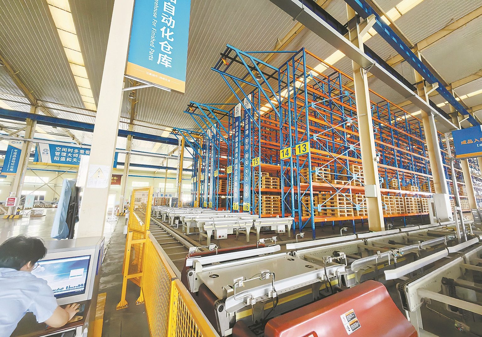 5月9日,在湖北友谦汽车零部件有限公司车间,技术人员对智能仓储系统进行调试。作为汽车和工程零部件生产企业,该公司超前谋划,打造智能仓储系统,通过垂直存储系统将公司半成品、成品紧固件存放在立体货架上,最大限度减少厂房占用面积,极大提升了工厂管理水平和标准化作业水平,解决了工厂库存周转、发货等问题,产能提升5%以上。